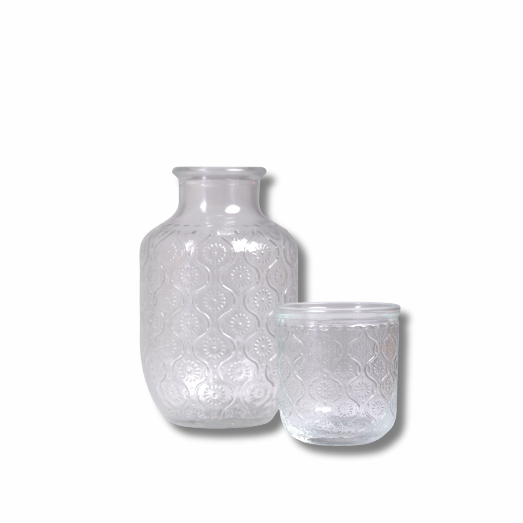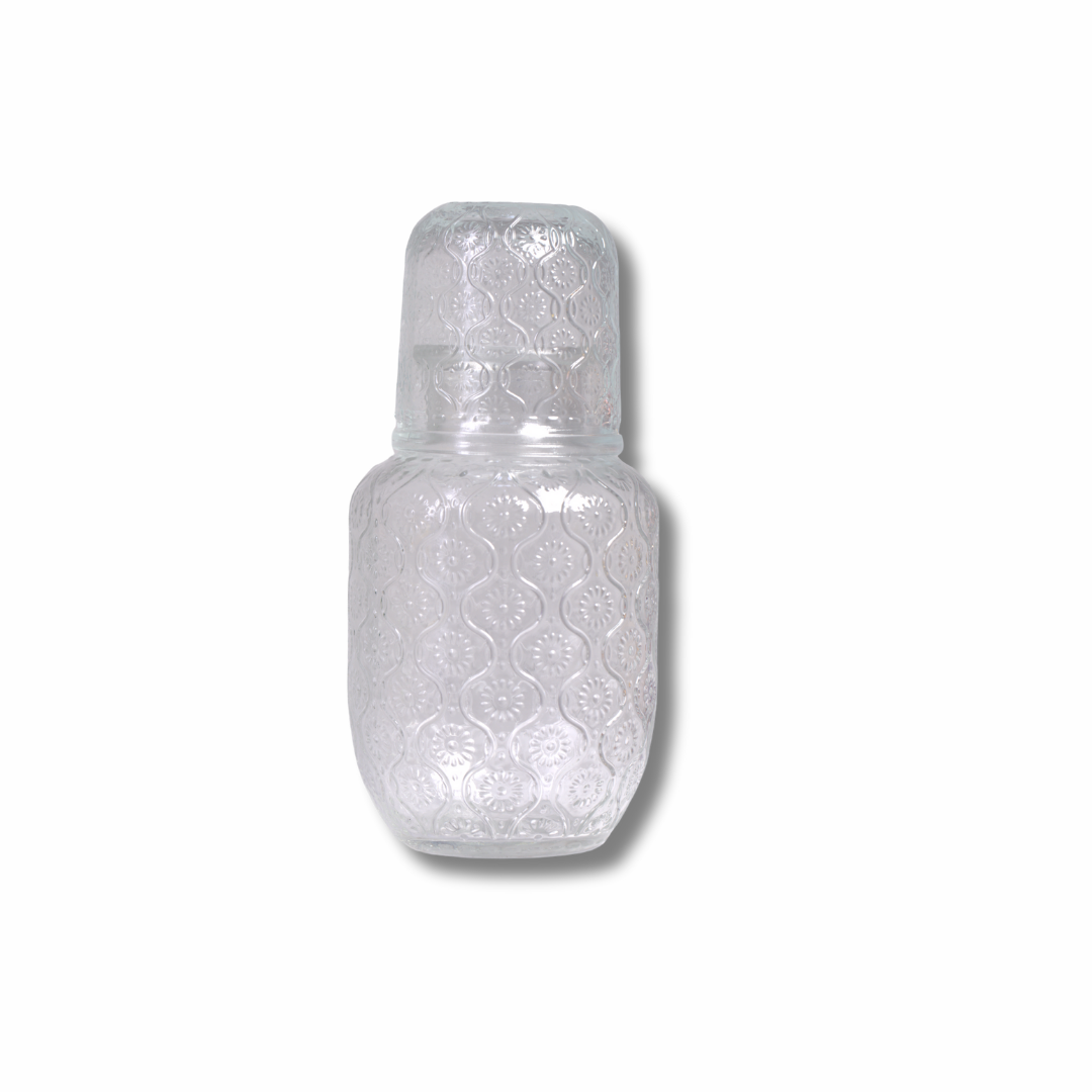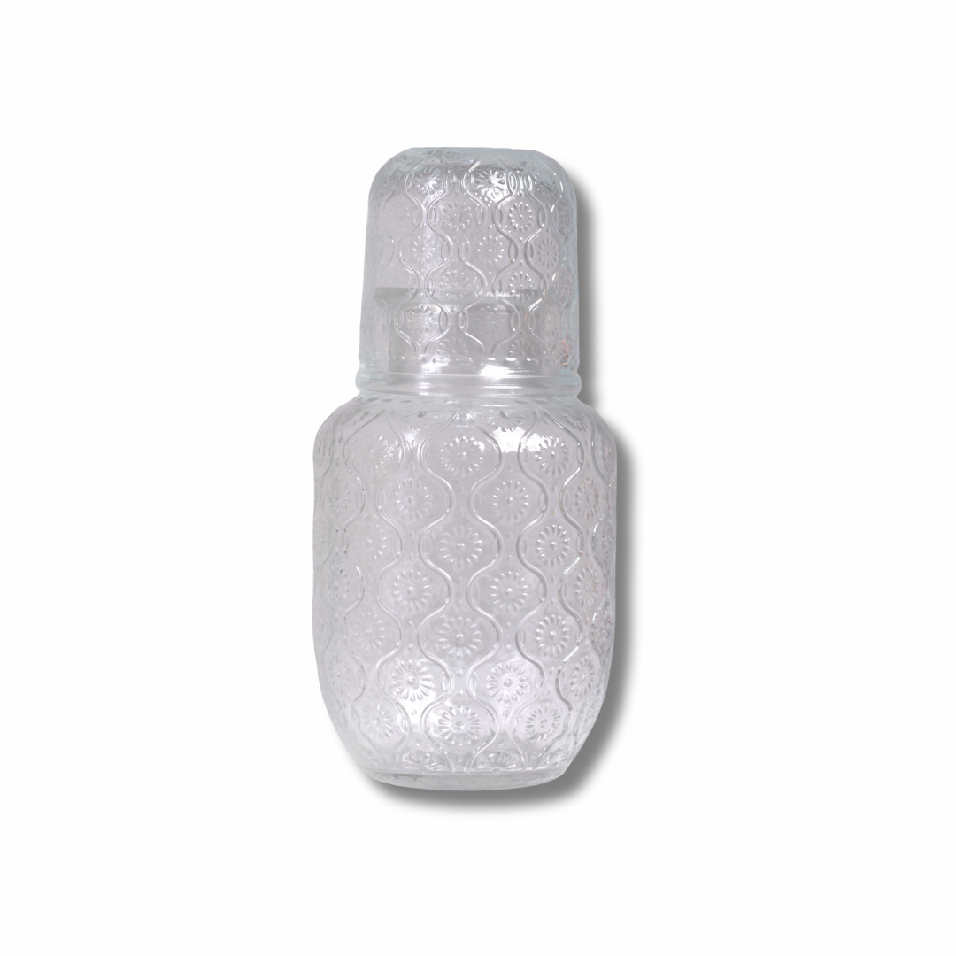 طقم كاراڤ ماء مع كوب-غطاء من الزجاج المنقوش — أنيق للكمودينو والمكتب