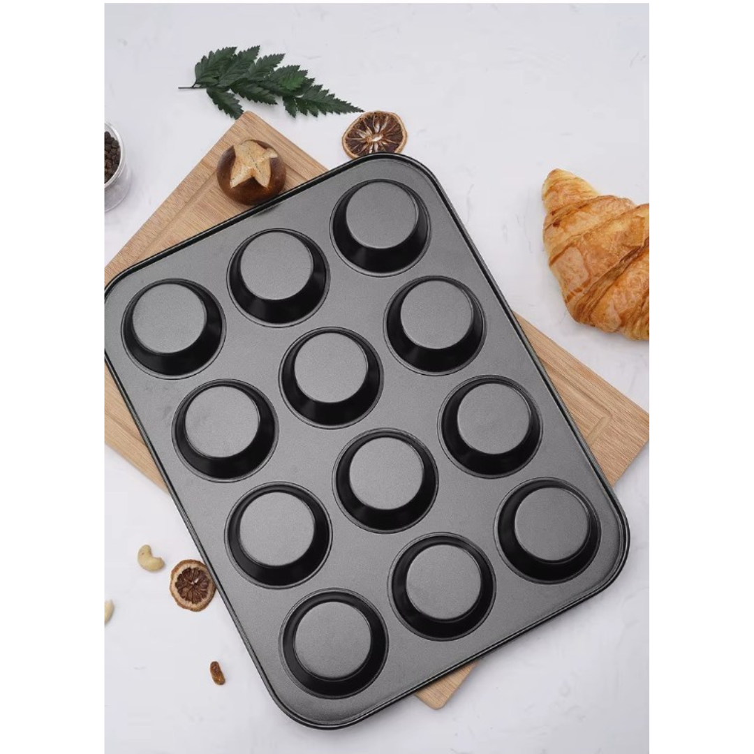 قالب كيك بتصميم مقاوم للالتصاق وقابل لاعادة الاستخدام لصناعة المافن والكب ، 12 فتحة