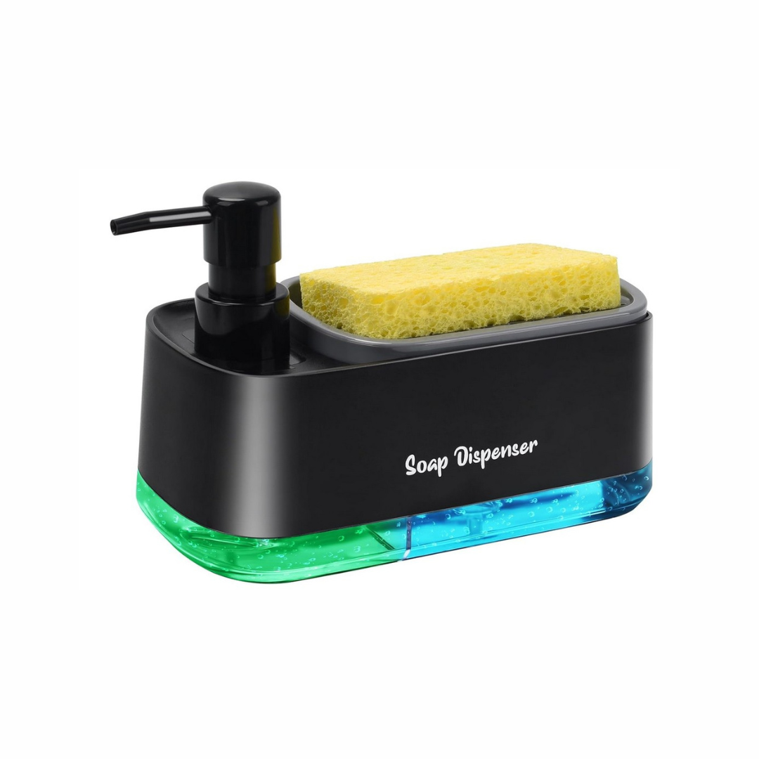 موزّع صابون بمضخّة مع حامل إسفنجة وخزان شفاف (أسود)