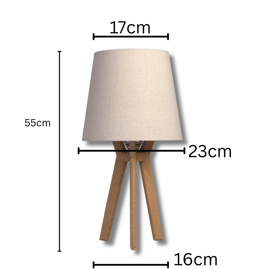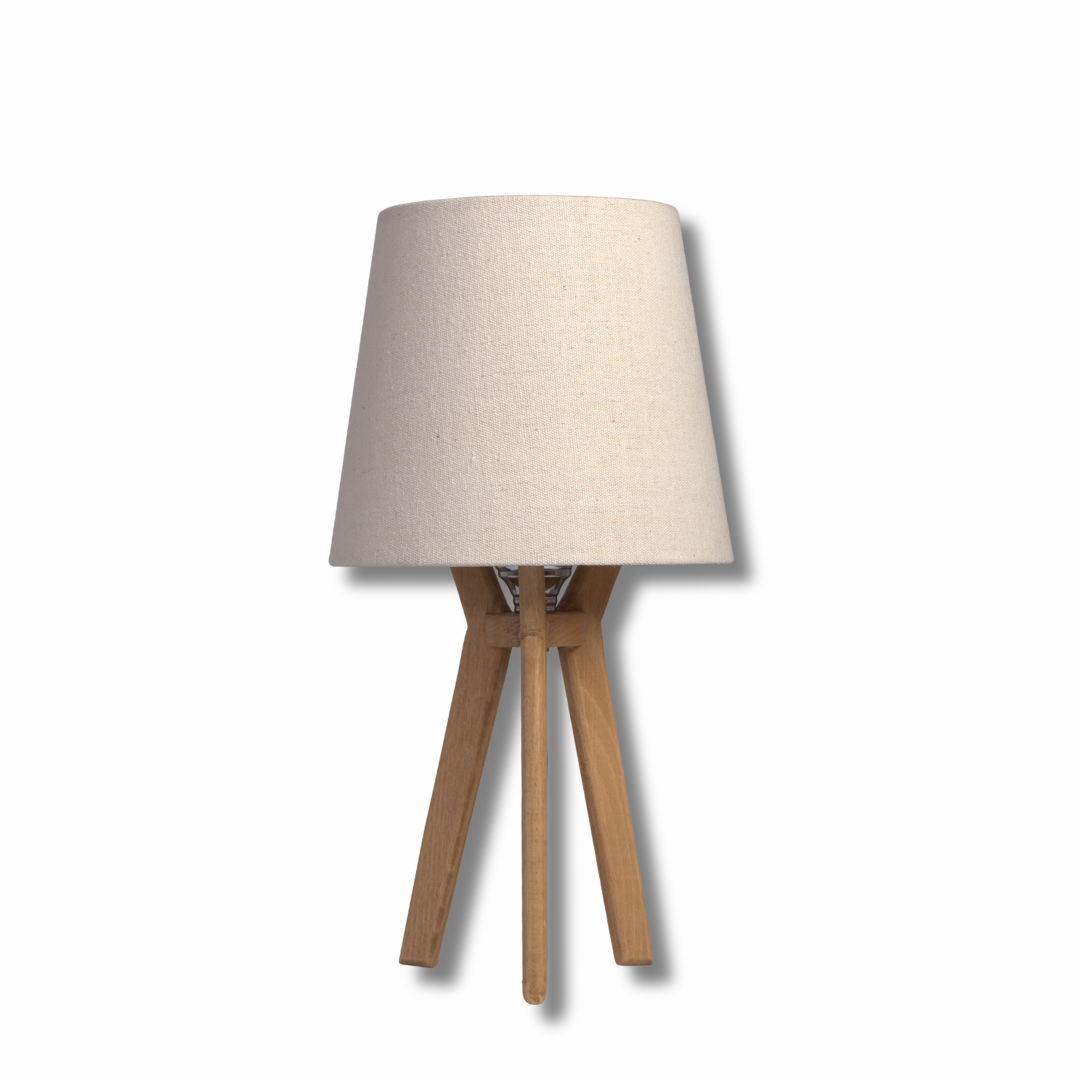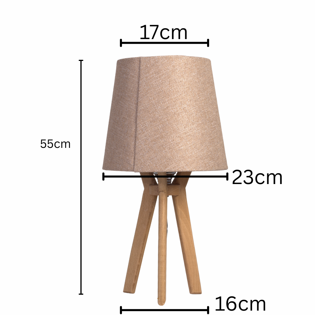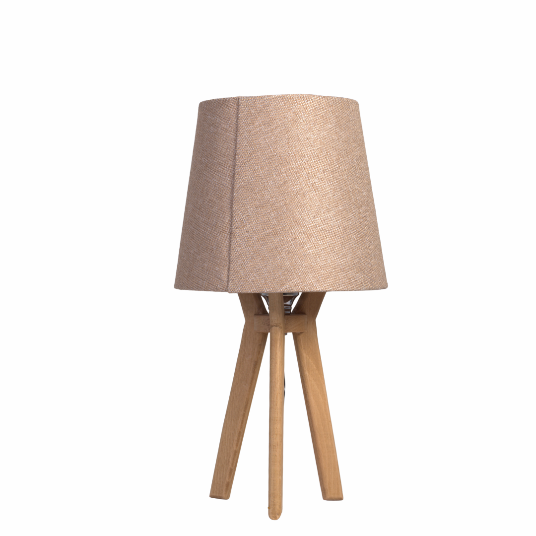 أباجورة طاولة خشبية بقاعدة ثلاثية مع شابوه قماشي – متوفرة بلونين