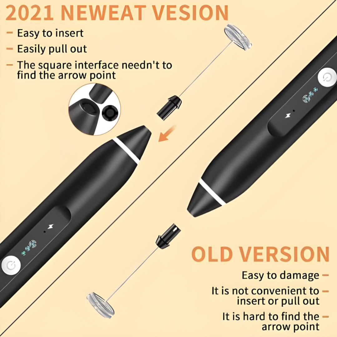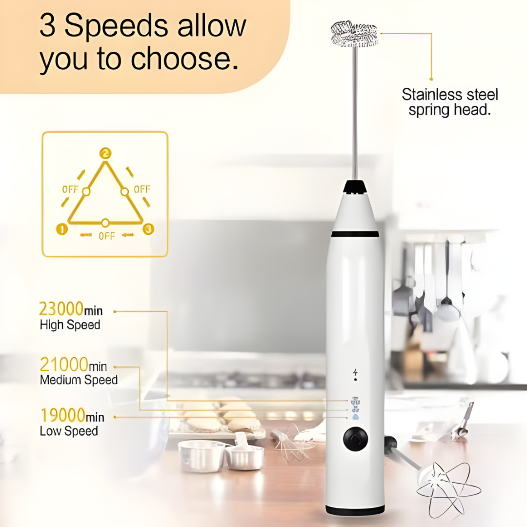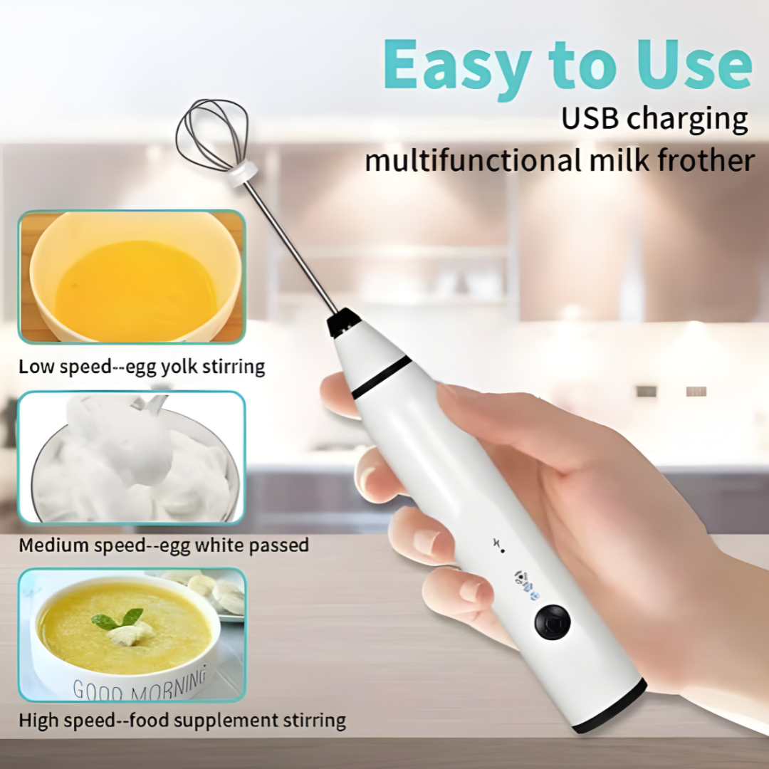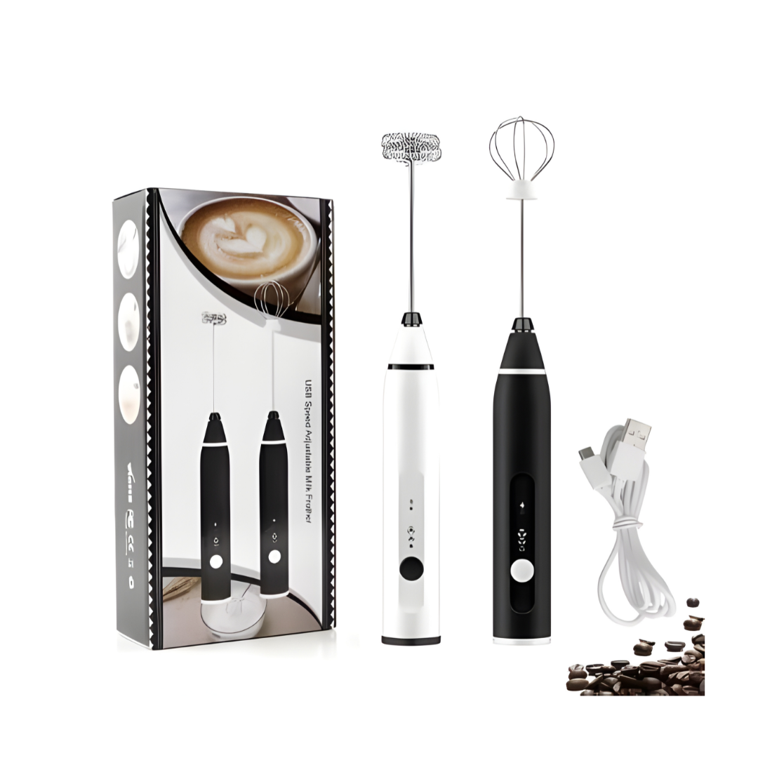 أداة خفق اللبن قابلة لاعادة الشحن وتعمل بـ3 سرعات - لصنع القهوة واللاتيه والكابتشينو مع مضرب اضافي للبيض