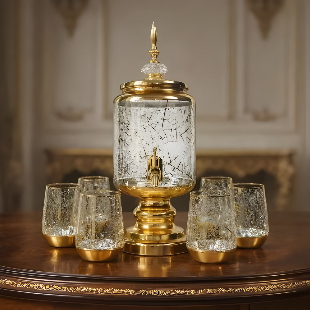 دسبنسر عصير مزهّب بزجاج كراكل + 6 أكواب