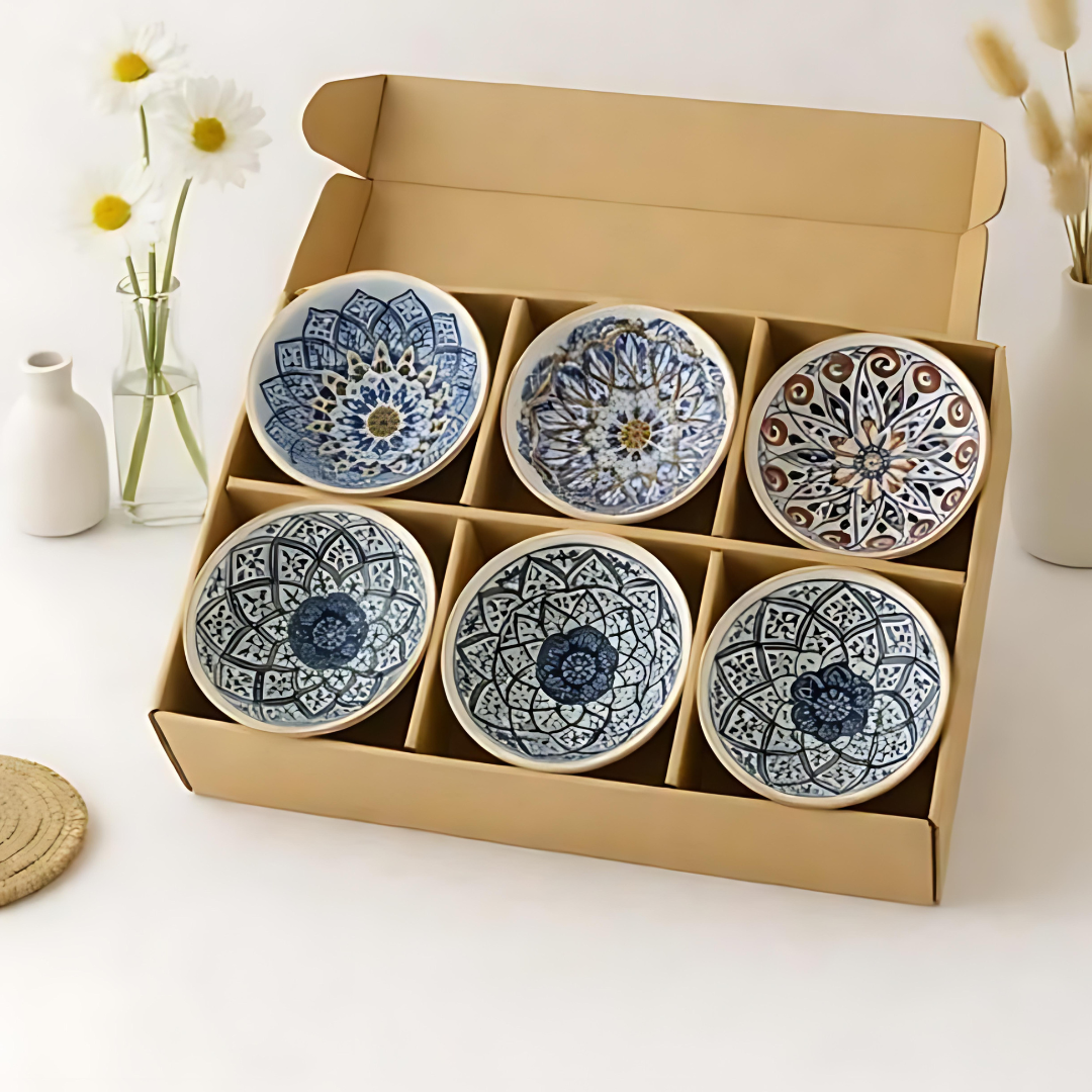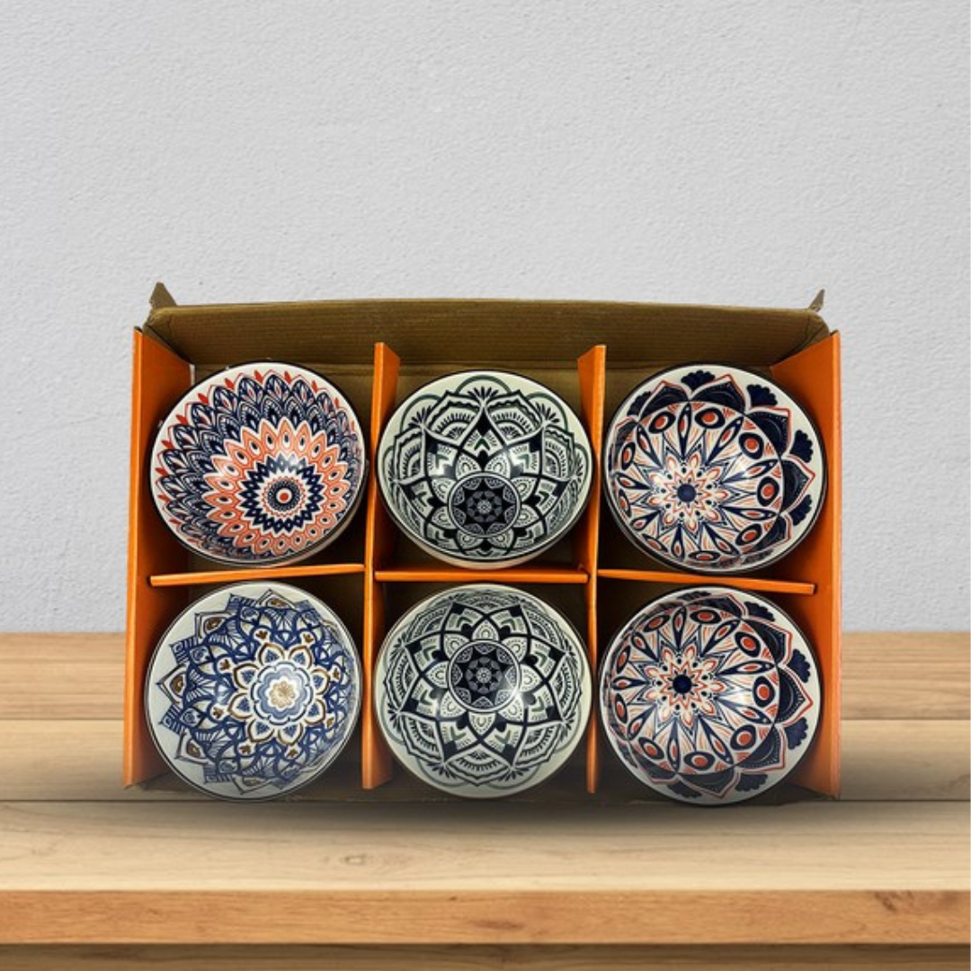 طقم 6 بولات سيراميك منقوشة – نقوش شرقية متعددة
