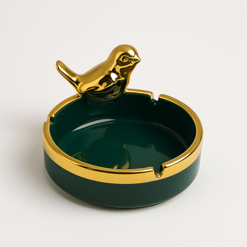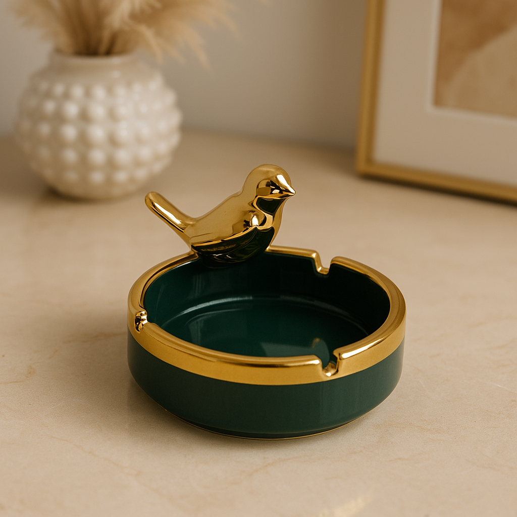 طفاية سجائر سيراميك فاخرة بتصميم الطائر الذهبي – لمسة ديكور تعكس الذوق الرفيع