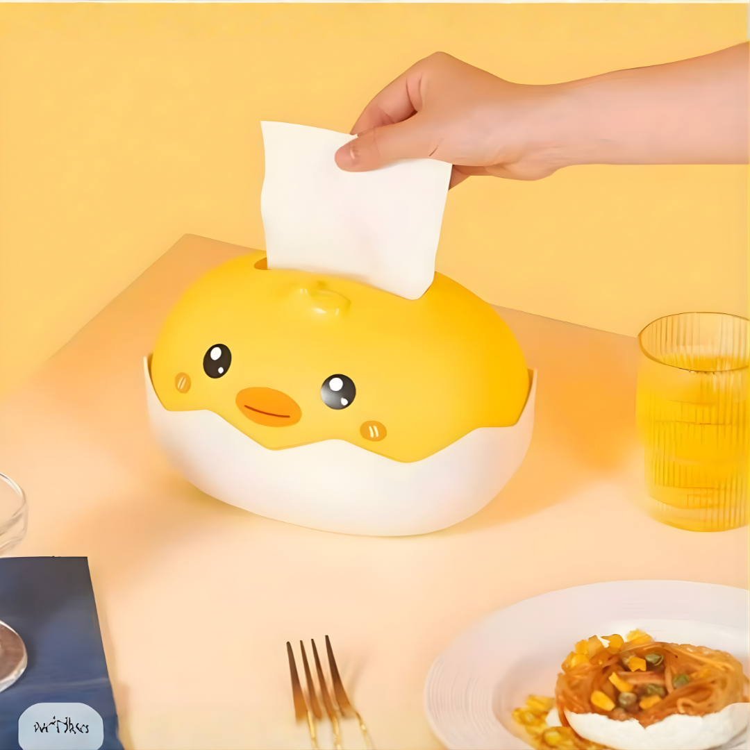 علبة مناديل بشكل بطّة لطيفة – بلاستيك مقوّى (أصفر/أبيض)