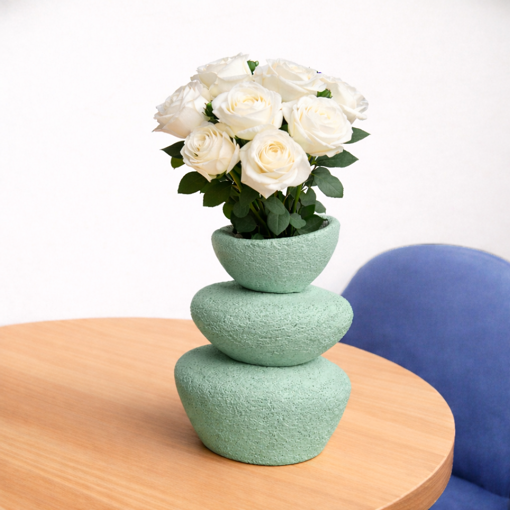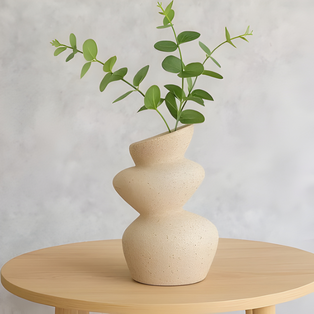 فازة ديكور بشكل عضوي ملتوي – بيج رملي