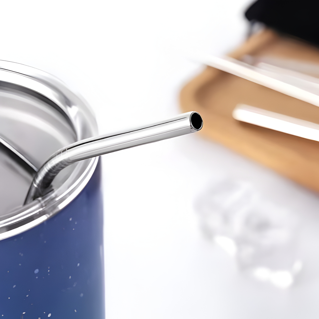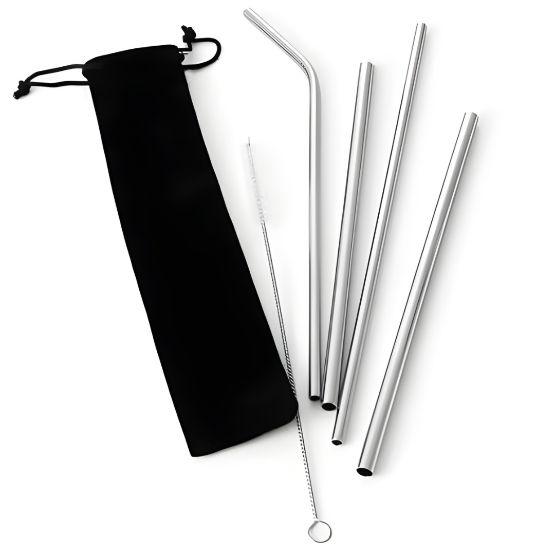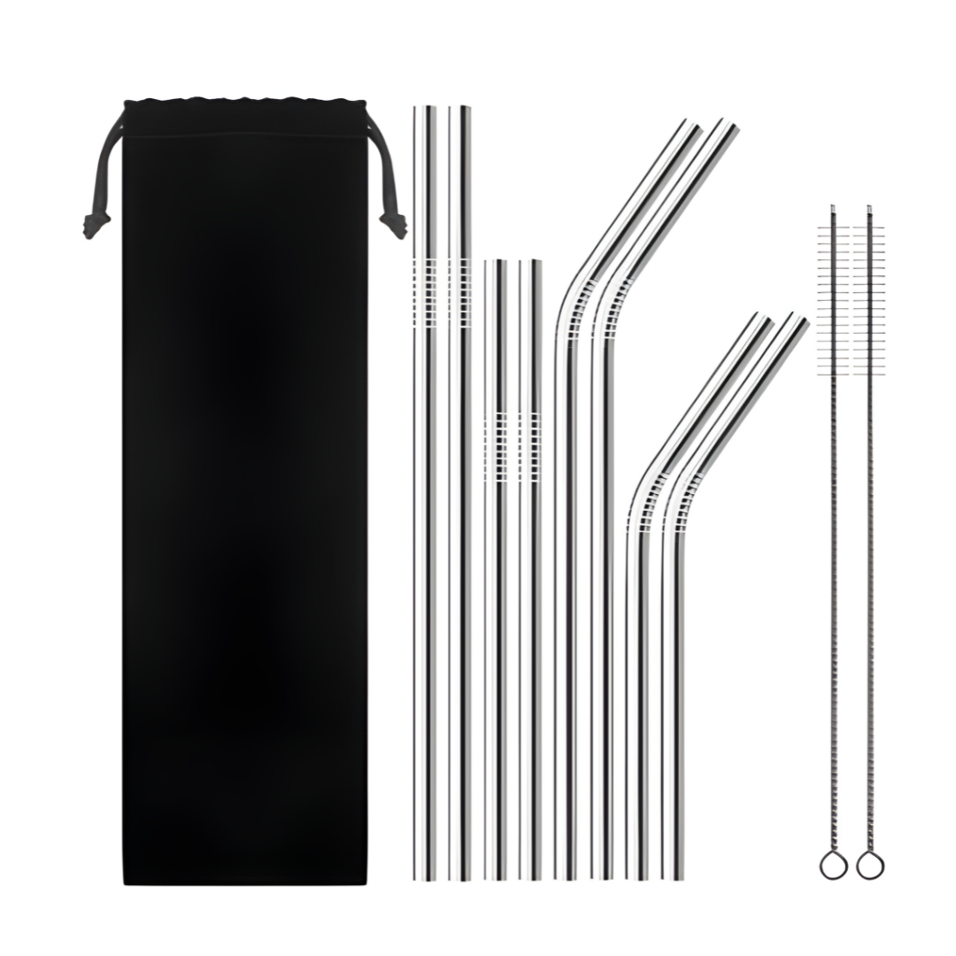 مصاصات شراب معدنية قابلة لإعادة الاستخدام من الفولاذ المقاوم للصدأ 304 قوية ومستقيمة أو منحنيّة، مع فرشاة تنظيف، من 4 قطع.