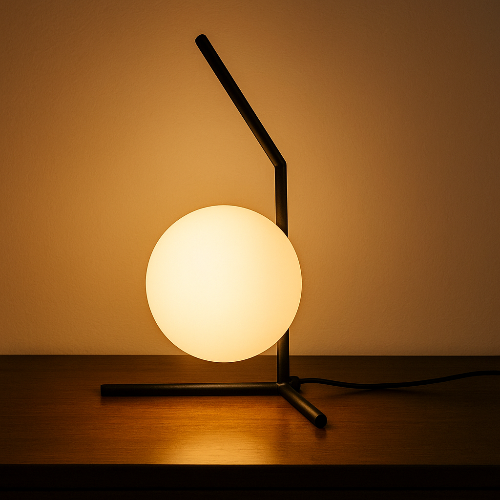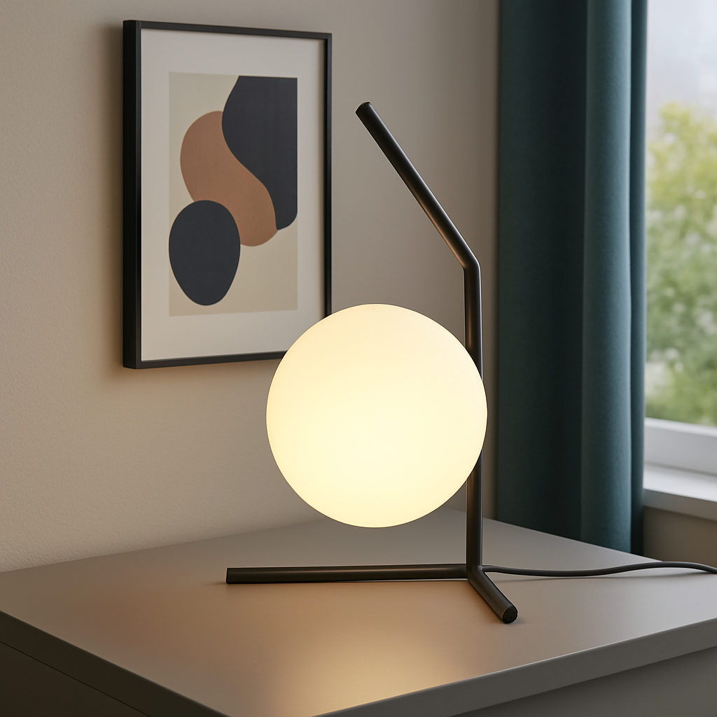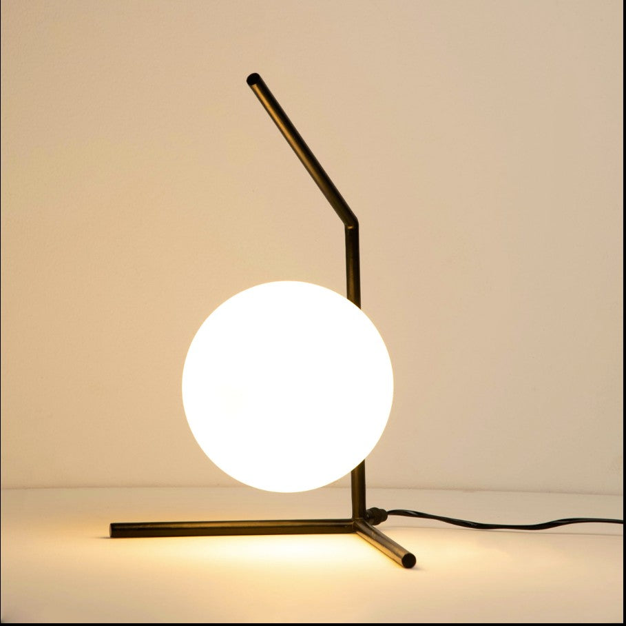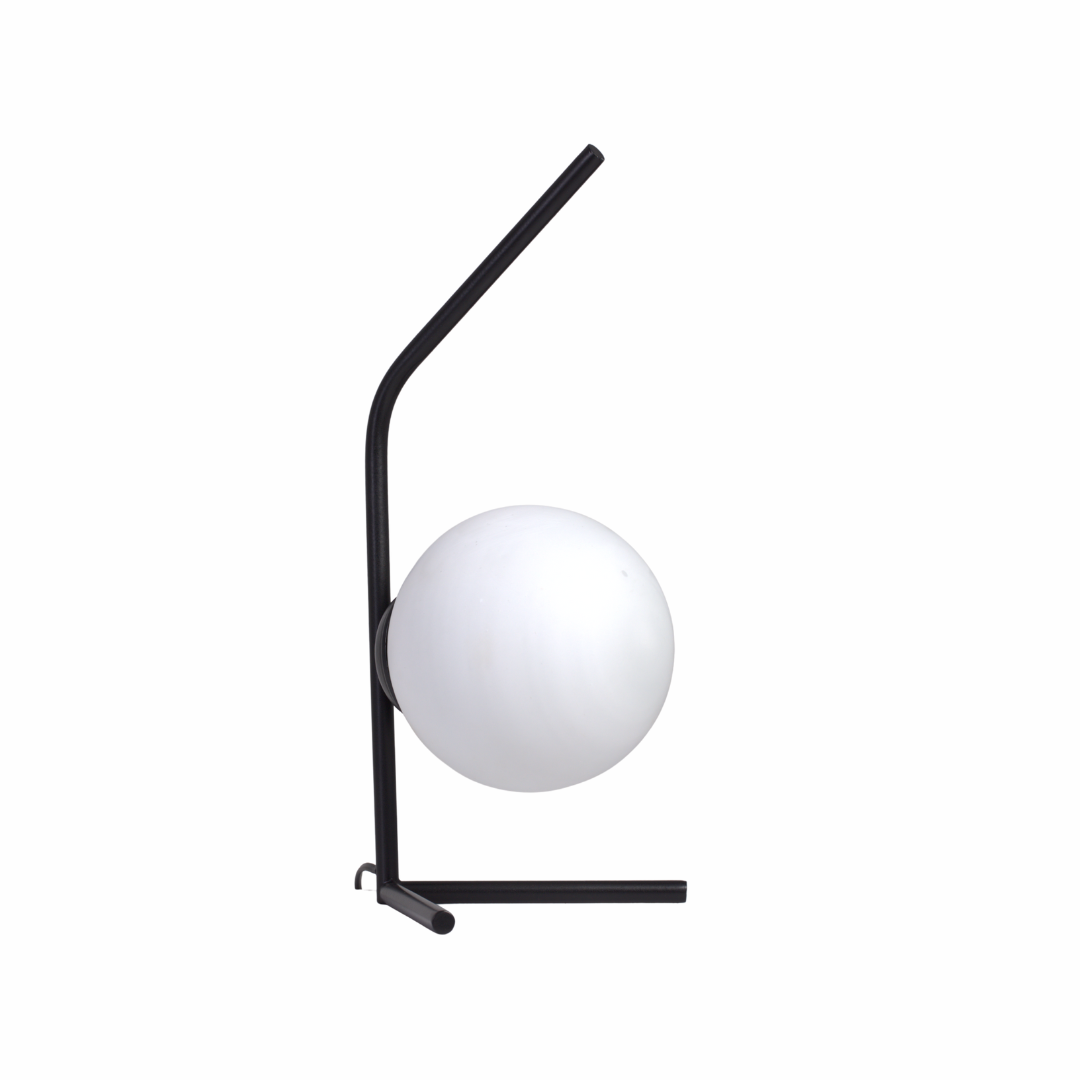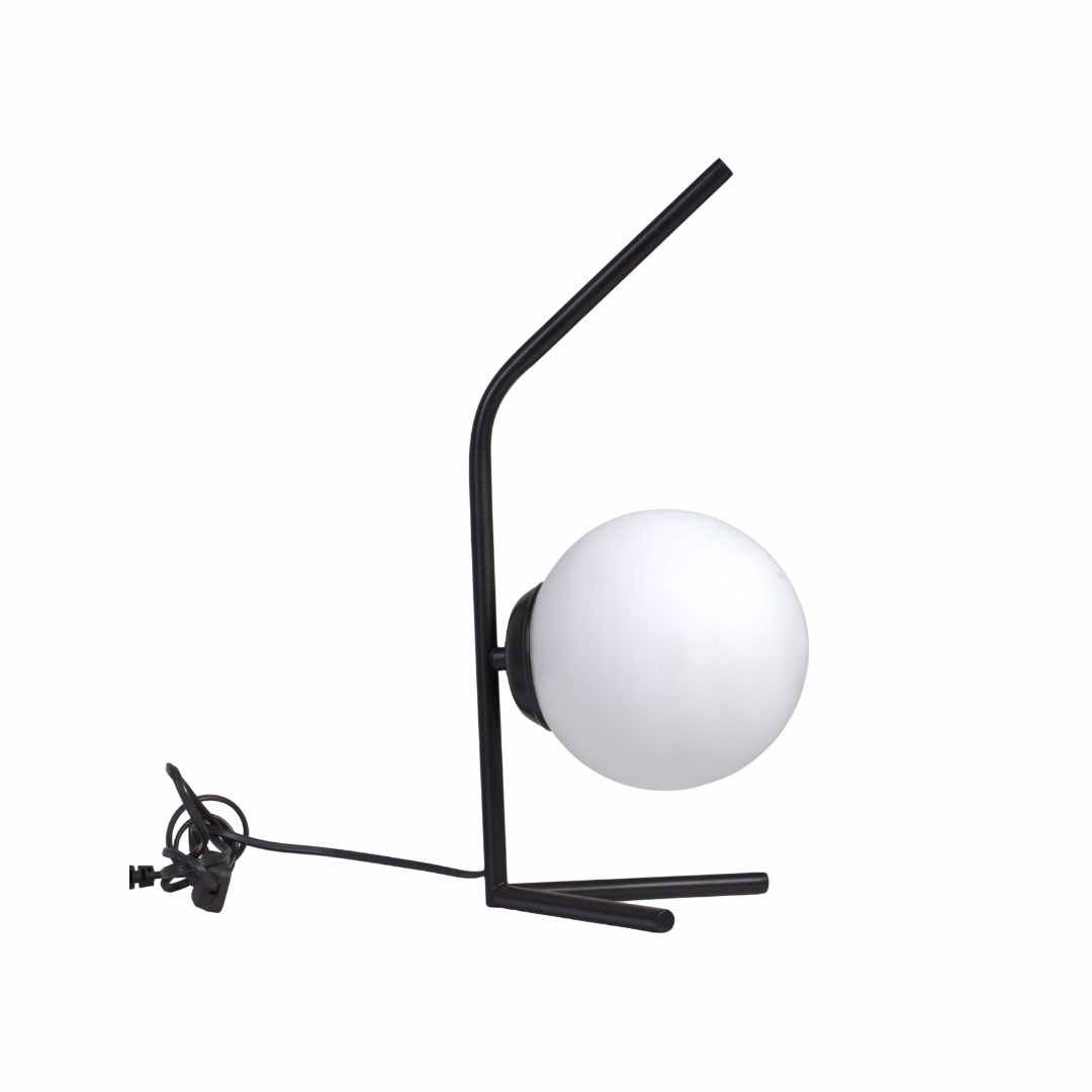 أضف لمسة فنية راقية لمساحتك مع مصباح الطاولة العصري بتصميمه الهندسي الفريد وكُرة الإضاءة البيضاء التي تمنح ضوءًا دافئًا ومريحًا للعين.