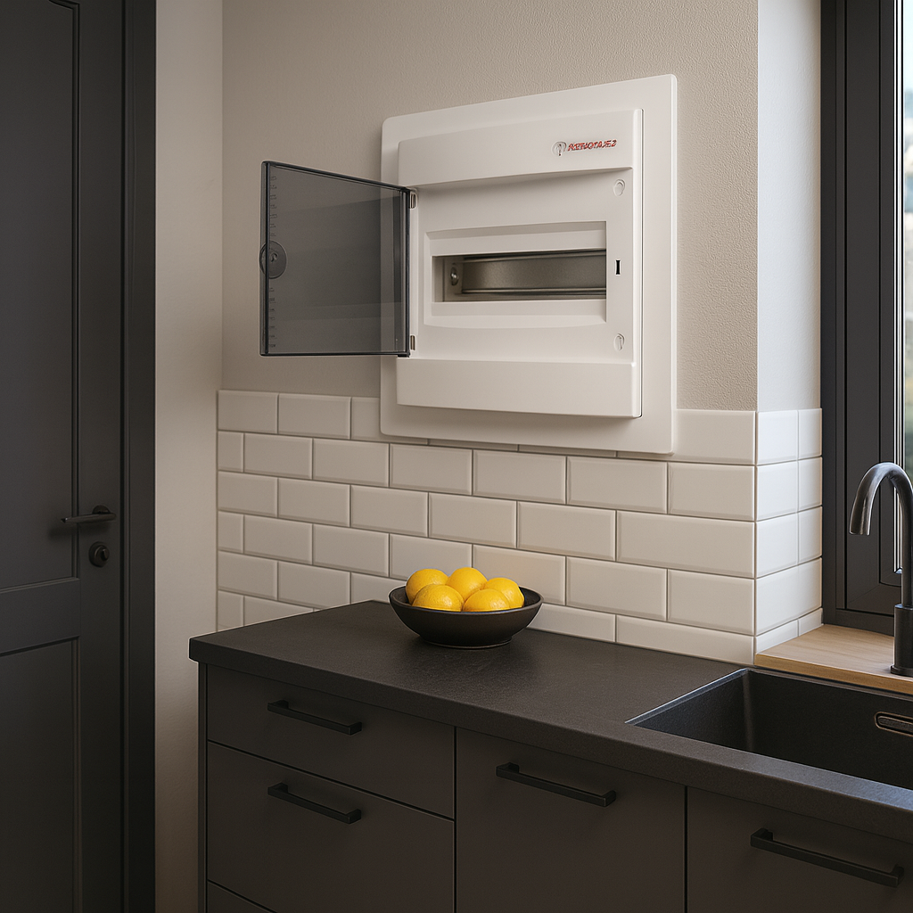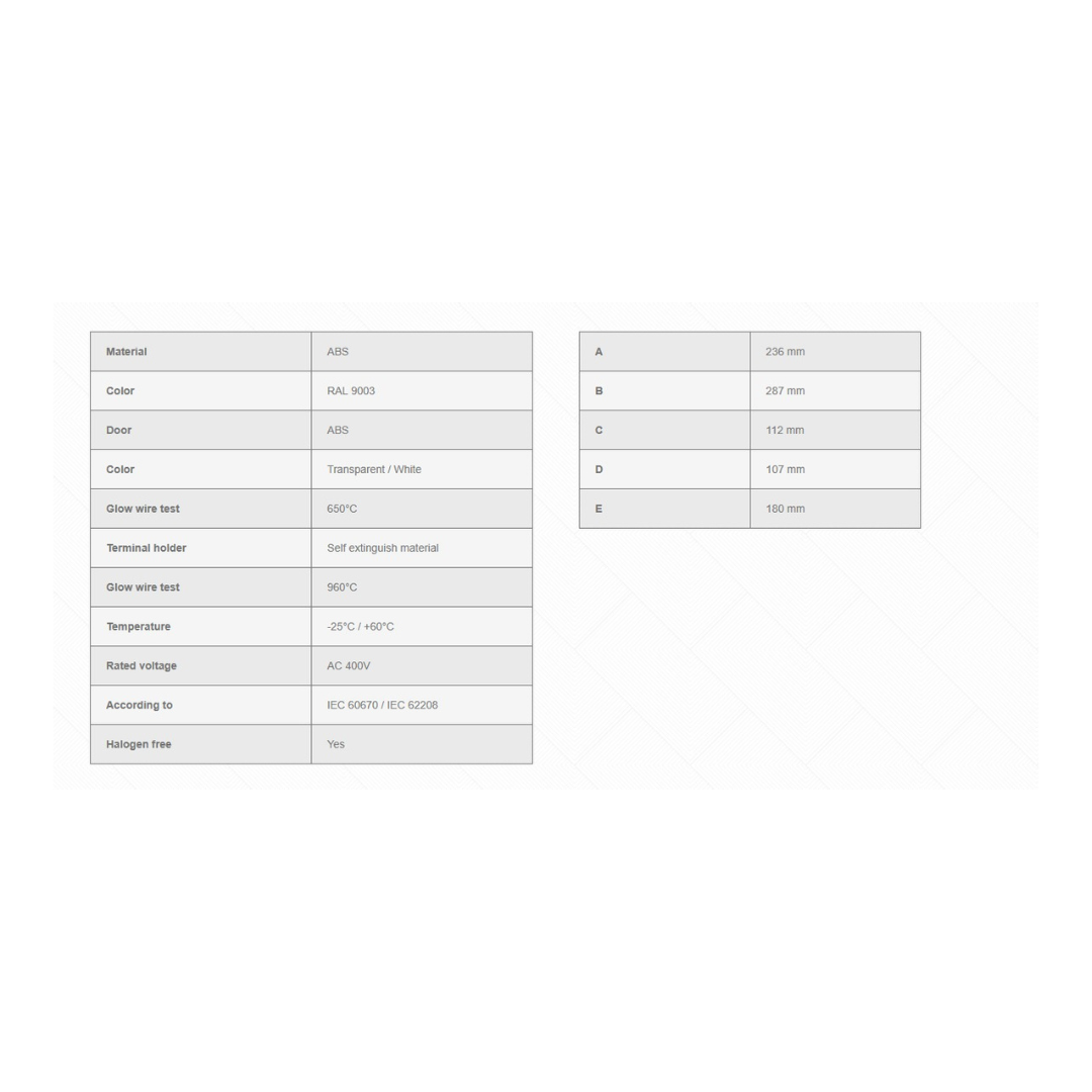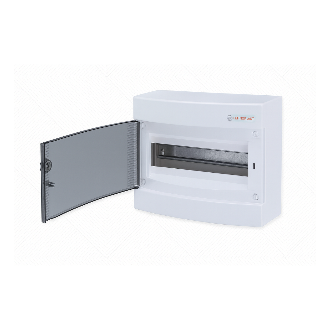 لوحة توزيع ١٢ خط | درجة حماية آي بي ٤٠، ٦٣ أمبير، ١٢ موديول، غطاء شفاف 12-line panel board | IP40 rating, 63 A, 12 modules, transparent cover