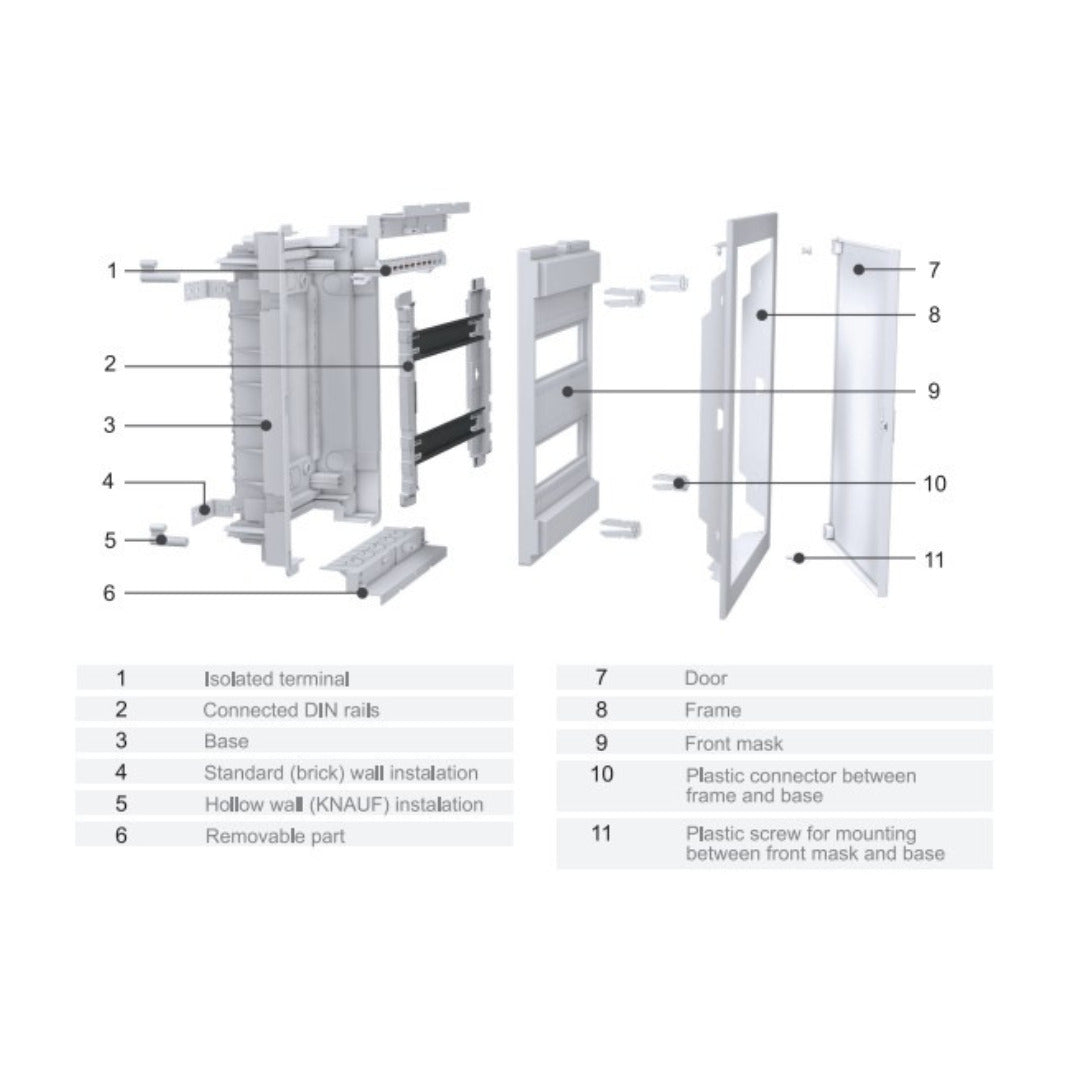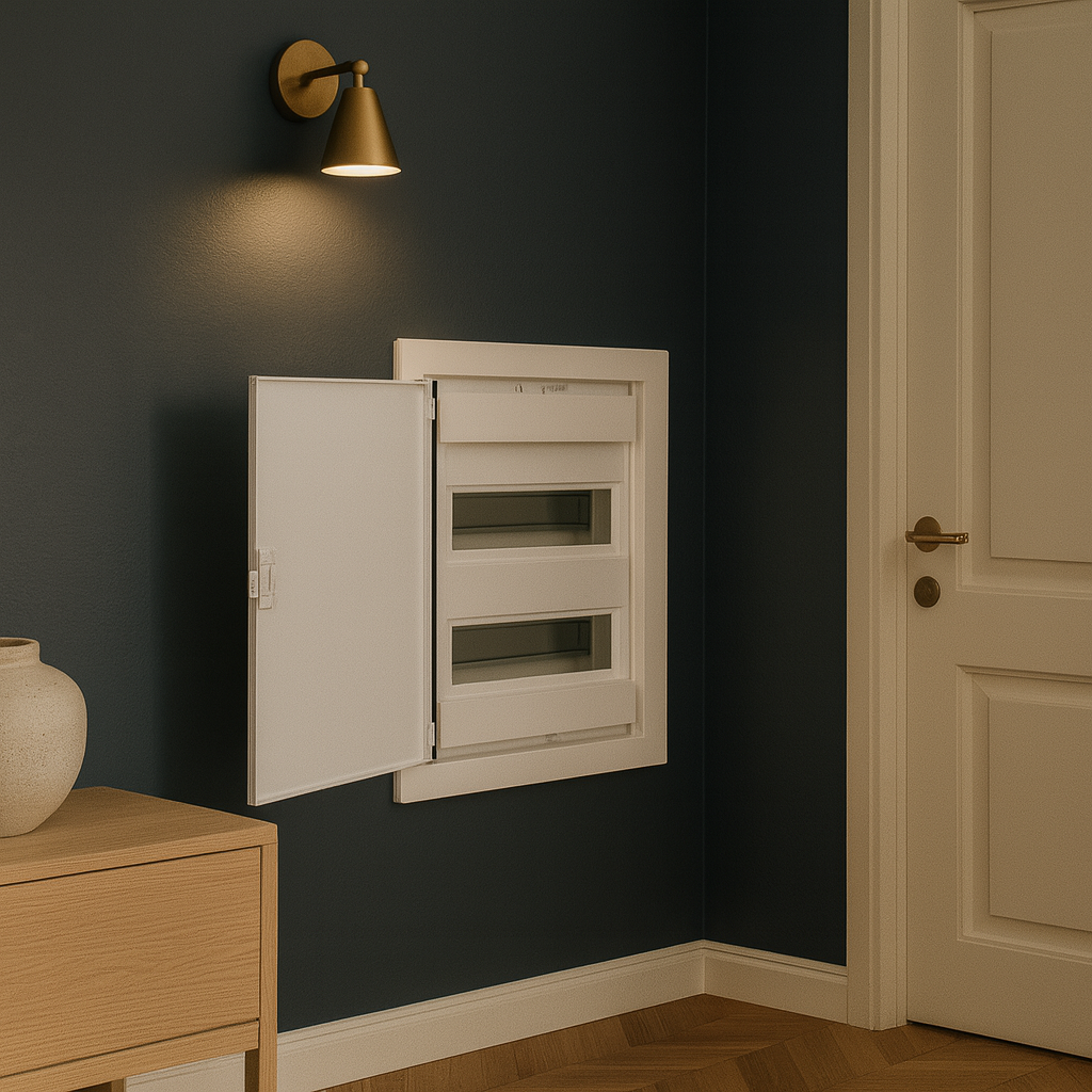 لوحة توزيع ٢٤ خط | آي بي ٤٠، ٦٣ أمبير، ٢٤+٤ موديول، باب معدني أبيض 24-line panel board | IP40, 63 A, 24+4 modules, white metal door